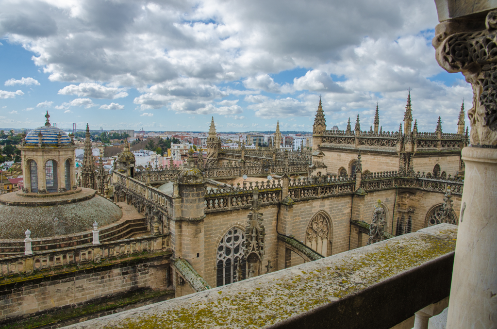 La cathédrale Notre Dame du siège de Séville qui est sûrement l’édifice de la ville le plus visité. Sa taille est impressionnante et il ne faut surtout pas oublier d’aller découvrir la tour qui vous permet à chaque étage d’avoir une vue différente sur la ville! Par contre, pour les paresseux attention, il n’y a pas d’ascenseur tout se fait à pied soit une trentaine d’étages.